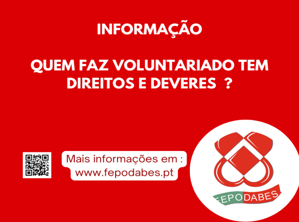 Precisamos de si! Venha fazer a diferença connosco nas nossas Associações! A FEPODABES – Federação Portuguesa de Dadores Benévolos de Sangue procura voluntários dedicados para fortalecer a nossa missão. Estamos à procura de pessoas que queiram contribuir nas seguintes áreas: - Trabalho administrativo – Apoio na organização de documentos, gestão de contactos e tarefas administrativas essenciais. - Redes sociais – Ajuda na criação de conteúdos, gestão das nossas plataformas e divulgação do nosso trabalho. - Organização de eventos – Planeamento e coordenação de iniciativas que promovem a nossa causa e envolvem a comunidade nomeadamente nas Colheitas de Sangue Se tem disponibilidade e vontade de contribuir,junte-se a nós! O que oferecemos? Formação, seguro e apoio para que se sinta confortável na função, uma experiência enriquecedora e gratificante e a oportunidade de fazer parte de uma causa que transforma vidas. Entre em contacto connosco através do direcao@fepodabes.pt ou 910 696 032. Cada voluntário é essencial. Contamos consigo!