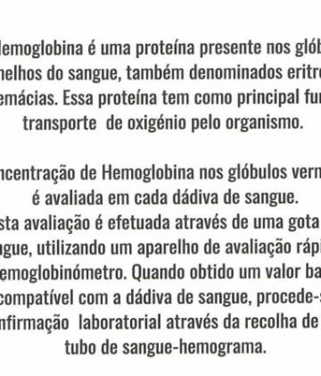 SABIAS QUE CERCA DE 20% DE PESSOAS CANDIDATAS À DÁDIVA DE SANGUE TEM A HEMOBLOBINA BAIXA?